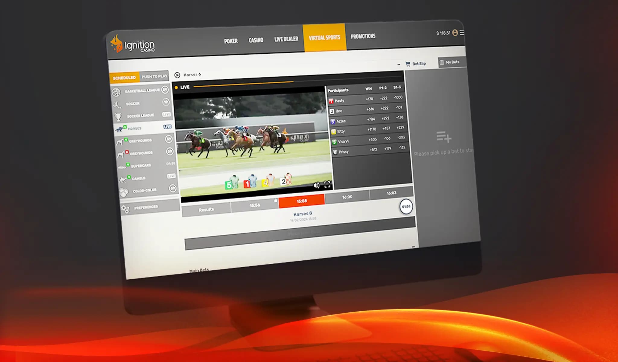 Virtual sports at Ignition are an invention of the computer age, and they combine the best of old school horse and greyhound racing with advanced technology to bring you online virtual sports betting action around the clock.
