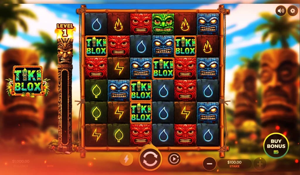 Tiki Blox, developed by Dragon Gaming, is a 6×6 cluster-pay video slot based on a tropical island tiki theme. Instead of paylines, this game awards wins when clusters of five or more matching symbols get together. The symbols then explode and make way for more symbols (known as “cascading”) and more prizes.