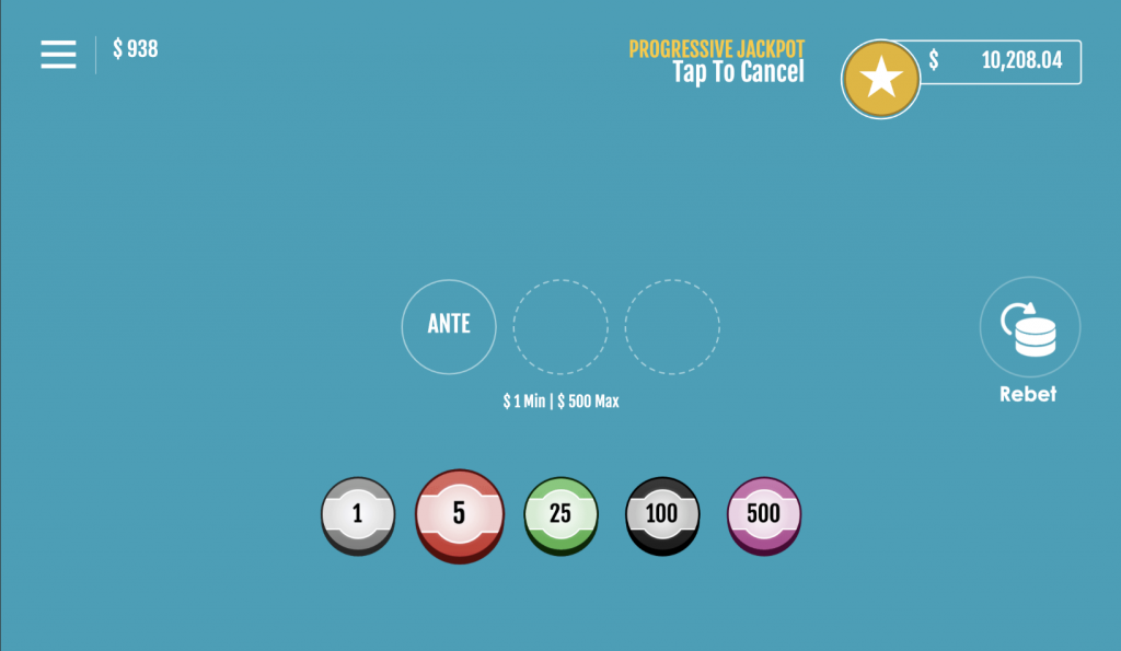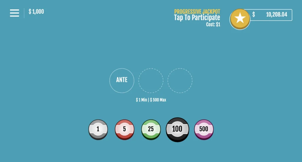 - First, pick your ante amount from the row of chips at the bottom of the game screen.