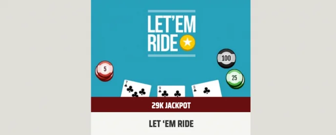 This is a quick and easy table game version of poker, available on both mobile and desktop. With no opponents – meaning no pressure from other players – Let ‘Em Ride lets you control the pace of the game, choosing to raise or check, depending on the strength of your three-card hand and the two community cards. If you land a top-tiered hand you’ll also score a bonus payout from the Progressive Jackpot.