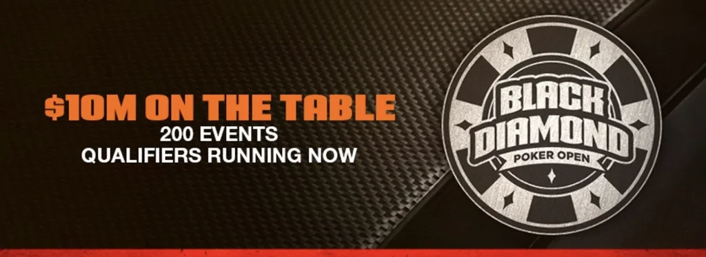 No one can say Ignition doesn’t do it big. For this event, there’s over ten mil in real money prizes up for grabs with all tournaments combined. We call it the Black Diamond Poker Open.