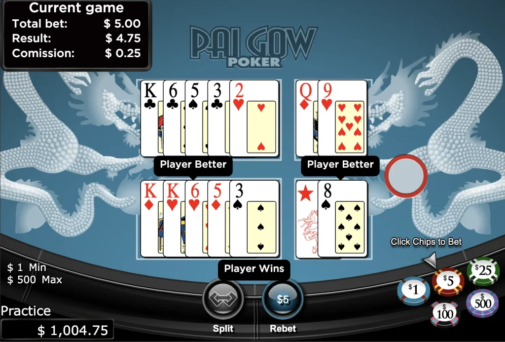 Split ‘em up, with trips in the high hand. If you have five aces and a pair of kings, though, you can keep the band together and send the cowboys on over to the small hand. Okay. Lesson over. Give Pai Gow a shot today for free and see what all the fuss is about!